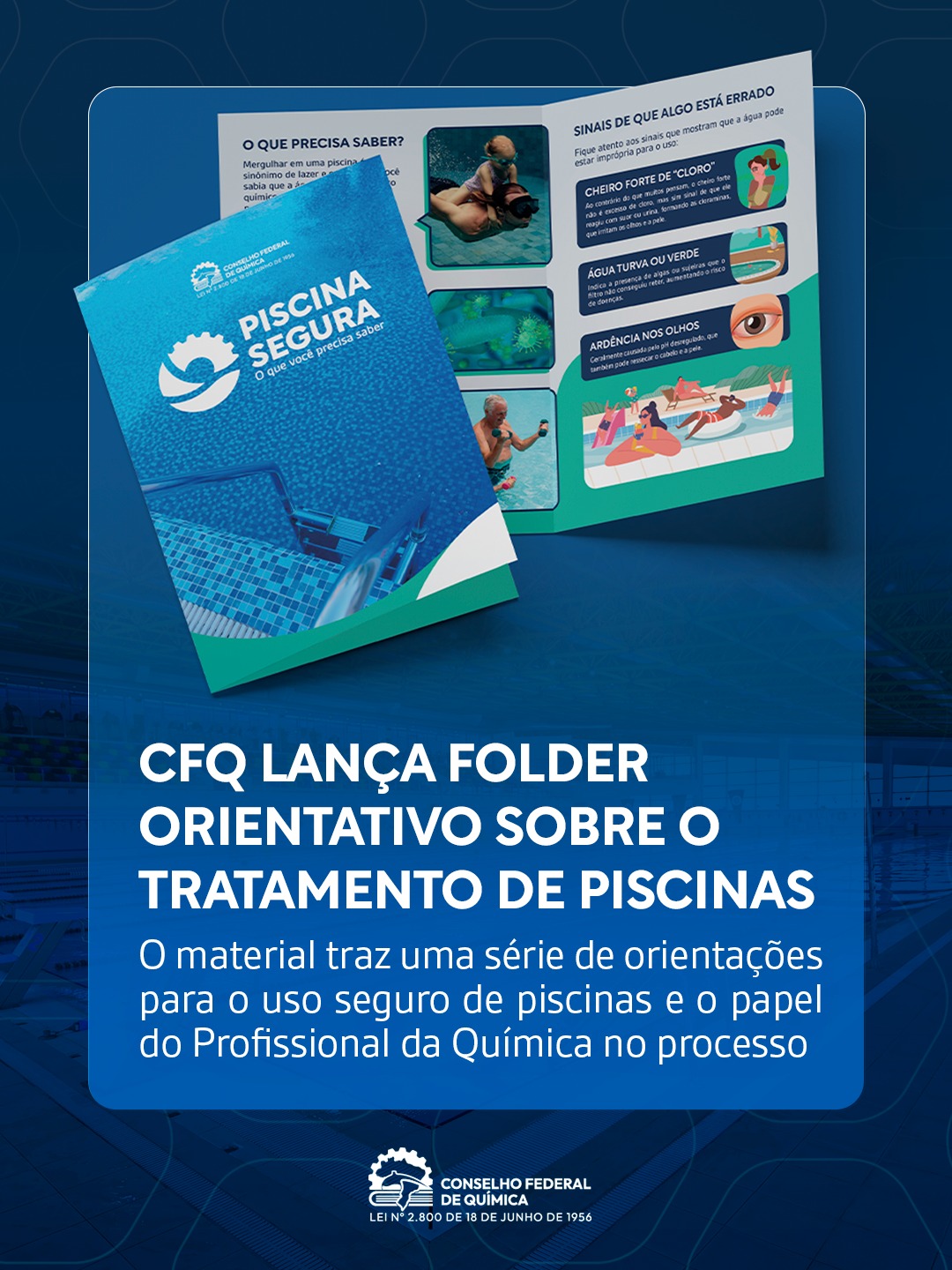 O Material traz uma série de orientações para o uso seguro de piscinas e o papel do profissional da química no processo.