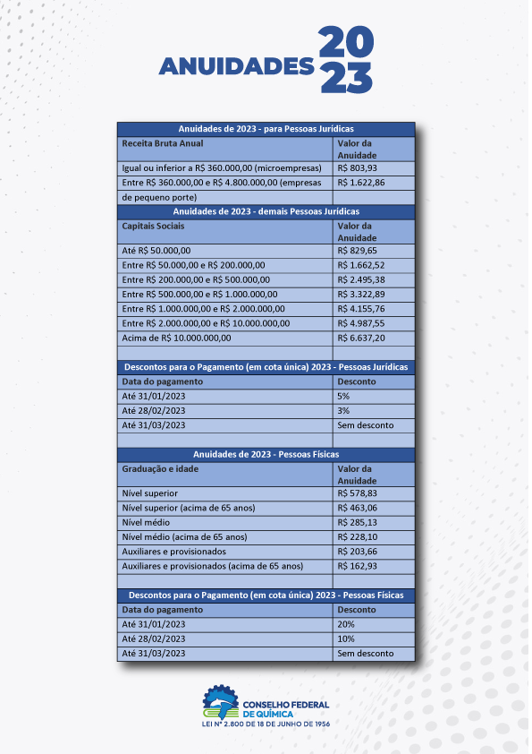 O Conselho Federal de Química, por meio de uma Resolução Normativa, estabeleceu os novos valores das anuidades dos profissionais e empresas registr...