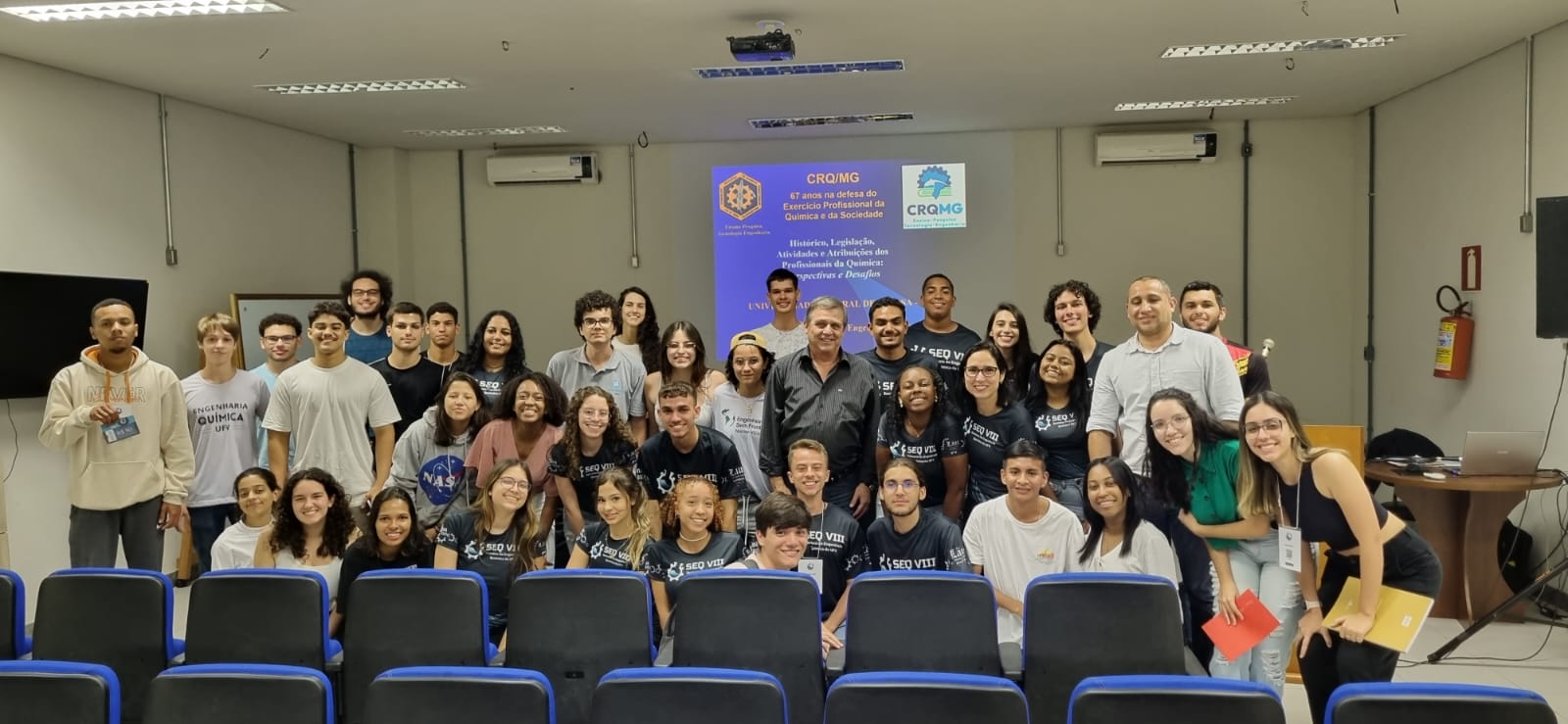 O evento cuja o tema deste ano foi ”Inovação, carreira e desenvolvimento além da indústria: A versatilidade do Engenheiro Químico”, ocorreu nos dias 21 a 25 de agosto de 2023. A SEQ é um evento institucional organizado por graduandos e pós-graduandos do curso de Engenharia Química da UFV, contando com o apoio de docentes e funcionários do Departamento de Química e do Centro de Ciências Exatas da UFV, o qual pretende manter e propagar uma tradição de pioneirismo e trabalho em equipe dentro e fora da comunidade acadêmica, buscando sempre o crescimento do curso de Engenharia Química e acreditando na importância da interdisciplinaridade, da criação de networking e do intercâmbio de conhecimentos entre instituições de ensino e empresas. Na noite do dia 25 de o presidente do CRQ-MG, Engenheiro Químico Wagner Perdezoli palestrou para os estudantes de Engenharia Química acerca do Histórico, Legislação, Atividades e Atribuições dos Profissionais da Química: Perspectivas e Desafios.