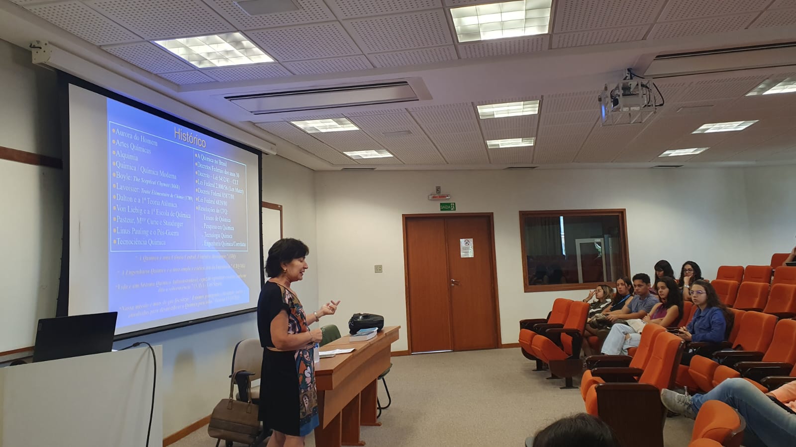 "A SEQ – Semana de Engenharia Química da UFMG – é um evento anual promovido por alunos da Engenharia Química da instituição. Ela tem como objetivo promover um ambiente de integração acadêmica por meio da abordagem de temas atuais sobre a Engenharia Química e áreas correlacionadas. O evento busca enriquecer e complementar a formação dos alunos, realizando atividades como palestras, minicursos, mesas redondas e visitas técnicas. Na quarta-feira (20/09), a conselheira do Conselho Regional de Química, Ana Luiza Dolabela de Amorim Mazzini, palestrou sobre o tema “Aspectos históricos, legislação, atividades e atribuições dos profissionais da Química: desafios e perspectivas”.