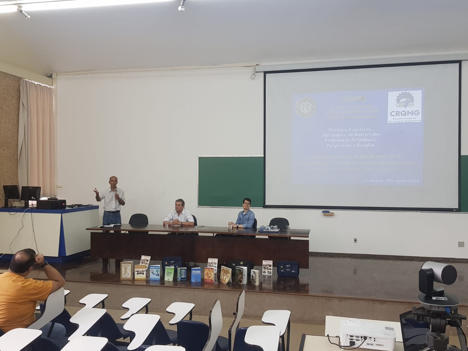 No dia 27 de outubro, teve lugar o 1º Workshop dos Cursos de Graduação em Química da Universidade Federal de Juiz de Fora (UFJF). Durante esse evento, foram abordados vários tópicos relevantes para a área da Química. Entre eles, destacam-se discussões sobre o currículo do curso de Química: desafios e demandas para a formação do profissional nos tempos atuais, contando com a participação do Prof. Dr. Antônio Carlos Sant’Ana, Prof. Dr. Rafael Arromba de Sousa e o presidente do CRQMG, Prof. Dr. Wagner José Pederzoli.