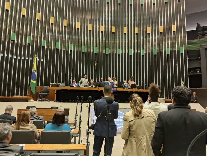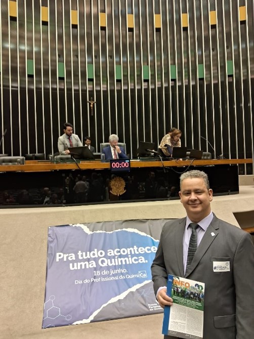 Em uma cerimônia carregada de emoção e representatividade, a Câmara dos Deputados promoveu uma sessão solene em alusão ao Dia do Químico na quarta-feira, 19 de junho, no plenário da câmara baixa do Congresso Nacional. O evento contou com a presença do presidente Prof. Dr. Wagner José Pederzoli e do Conselheiro Federal MSc Rodrigo Alan de Moura Rodrigues.