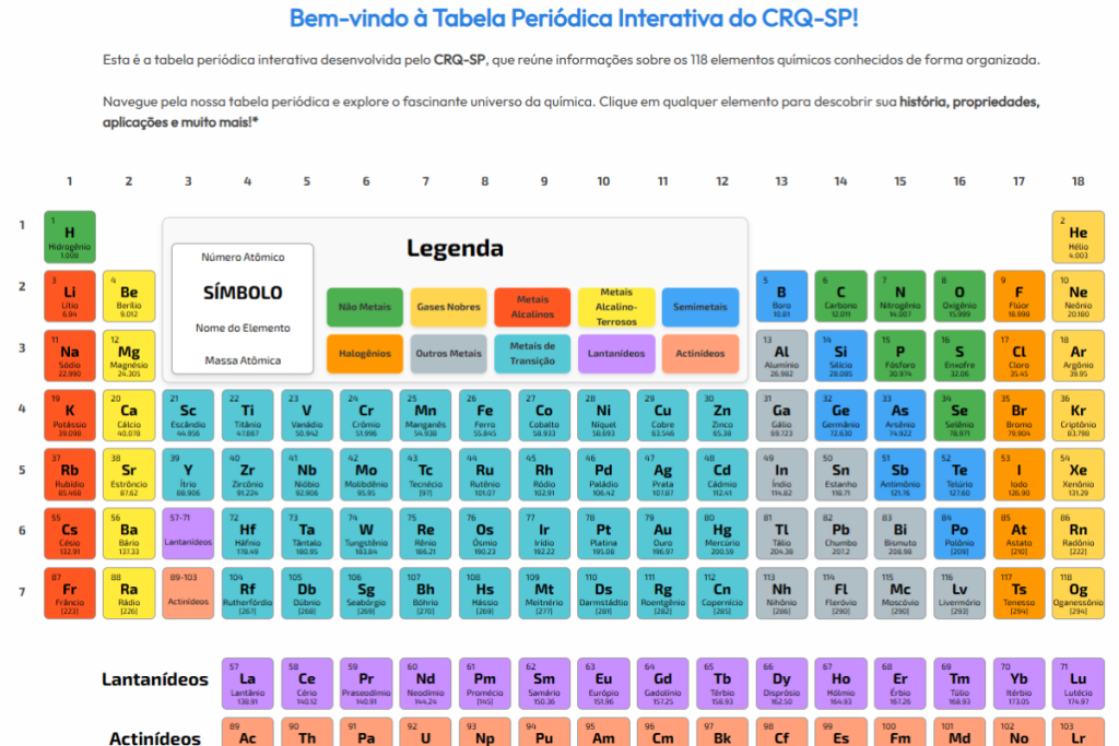 O Conselho Regional de Química da 4ª Região (CRQ IV – São Paulo) lançou uma tabela periódica interativa que reúne informações detalhadas sobre os 1...