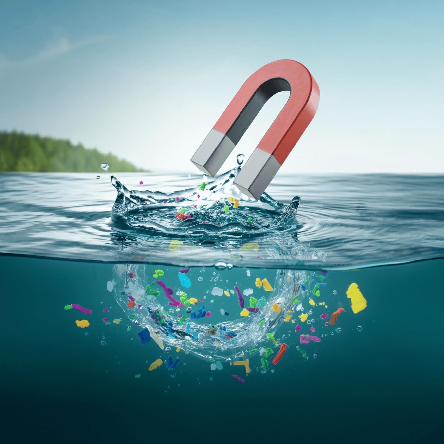 Novo método usa nanopartículas magnéticas de dopamina para capturar micro e nanoplásticos e removê-los com a ajuda de um ímã.